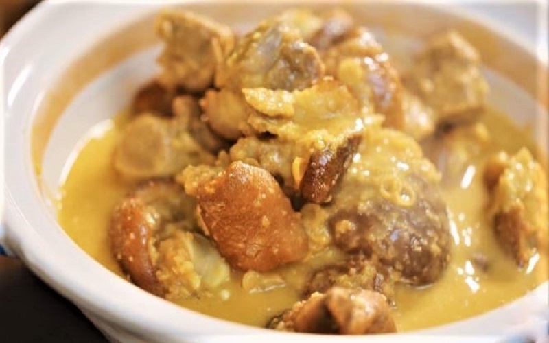 Món ăn nước sốt sánh quyện, đậm đà, thơm phức của riềng, sả, nghệ và vị ngọt của giò heo đã được hầm chín mềm thấm đều, ăn với cơm hoặc bún đều rất ngon, rất hợp làm đồ nhắm cho ông xã nhắm rượu, nhâm nhi với bạn bè.
