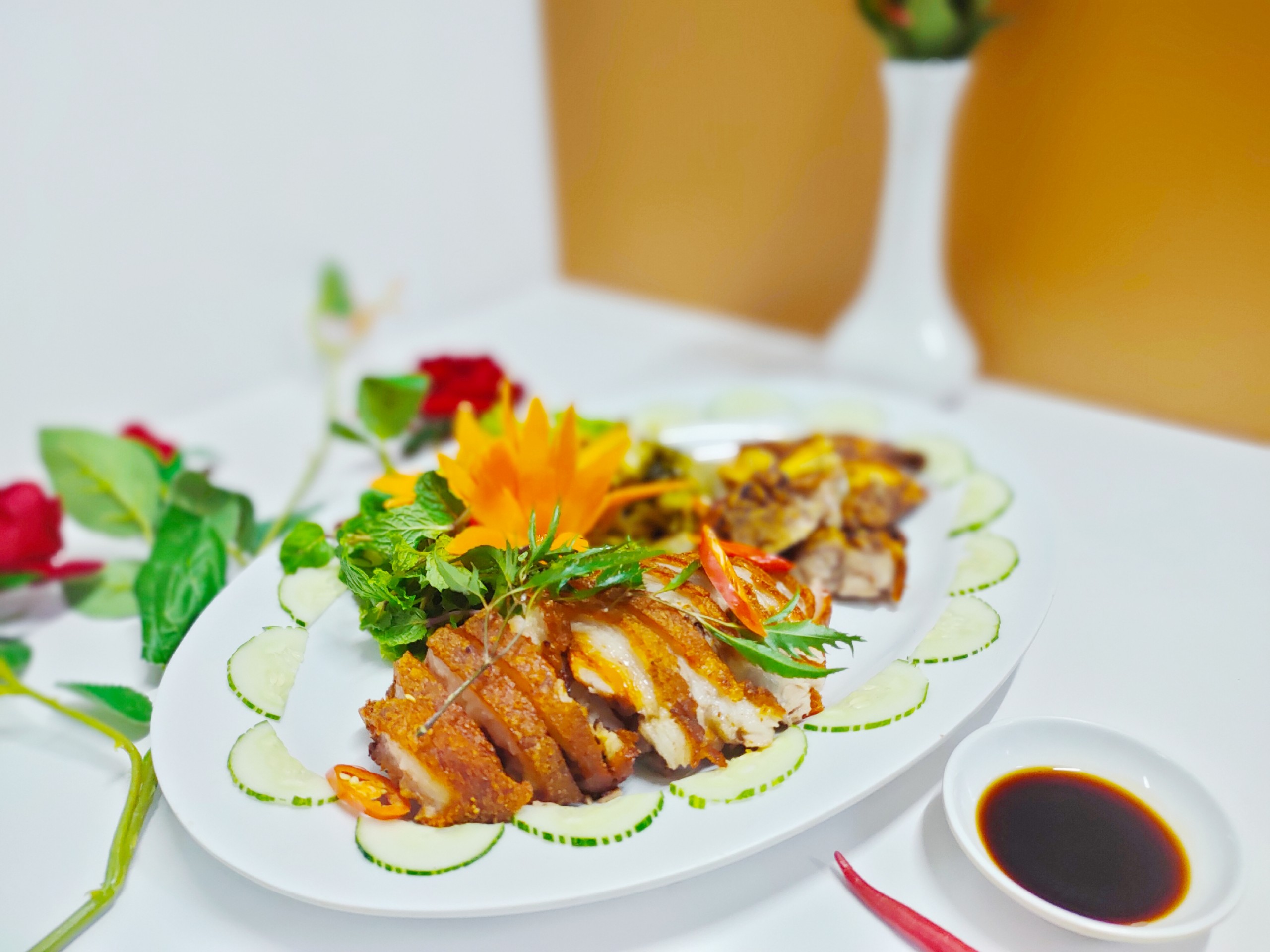 Món ăn sau khi hoàn thành nhìn vô cùng hấp dẫn luôn. Khi thưởng thức, bạn sẽ cảm nhận được lớp da giòn rụm như tan ngay trong miệng. Còn phần thịt bên trong thì không hề bị khô, vẫn giữ nguyên vẹn độ ẩm, mềm, thấm vị đậm đà. Bạn có thể dùng kèm chân giò với rau thơm, tương ớt, cải chua, kim chi,… để tăng thêm hương vị nhé.